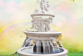 歐式別墅大型庭院多層噴泉雕塑擺放人物