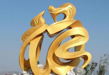 金色玻璃鋼福字雕塑,為廣場帶來祥和之氣