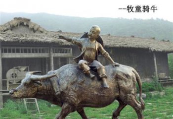 玻璃鋼仿銅民俗文化人物牧童騎牛雕塑