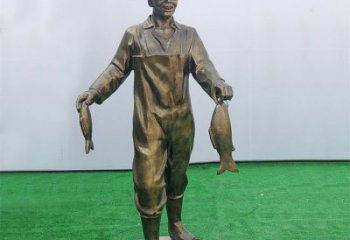 仿銅玻璃鋼漁民人物雕塑戶外公園民俗文化裝飾擺件