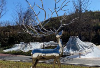 不銹鋼戶外園林景觀梅花鹿抽象雕塑
