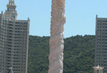 神秘的石雕龍柱,在寺廟佛堂廣場上傳承著古老的文化