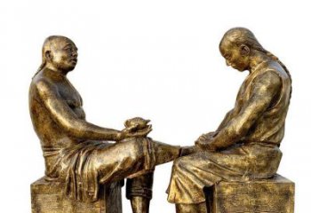 聽爺爺講故事,玻璃鋼仿銅民俗人物系列雕塑