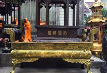 平口鍍金仿古香爐,為寺廟和戶外添彩