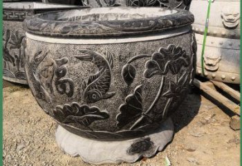 中式風格漢白玉鯉魚浮雕水缸