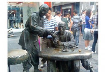 仿銅民俗人物情景雕塑——耍猴玻璃鋼雕塑